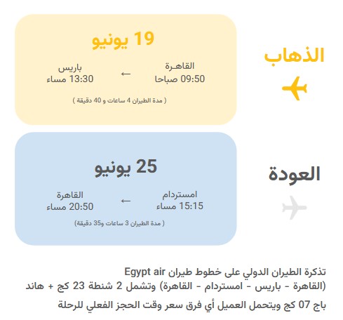- From 19 to 15 days before the travel date: EGP 10,200 + airline penalty (if the ticket has been issued), in addition to the previous clauses.